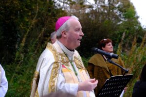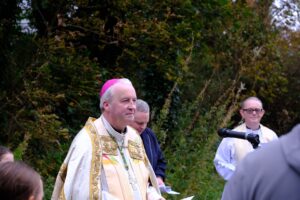 Many thanks to Dromintee Parish for hosting a beautiful liturgy to mark the conclusion of the Season of Creation 2025. The celebration took place in the peaceful woodland setting of Jonesborough, where Bishop Michael Router was joined by Fr Seamus White, Parish Priest of Dromintee, Deacons George Kingsnorth and Brendan McKernan, and members of the Pastoral Team from the Archdiocese of Armagh.